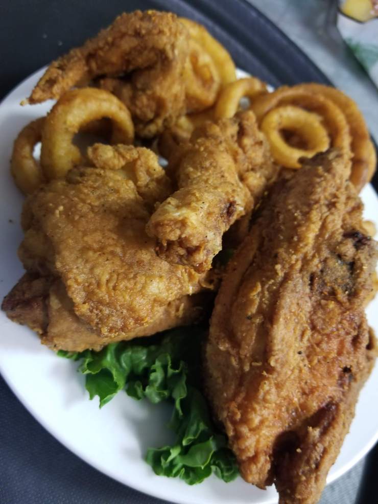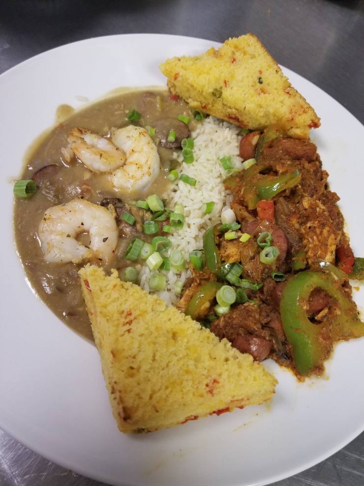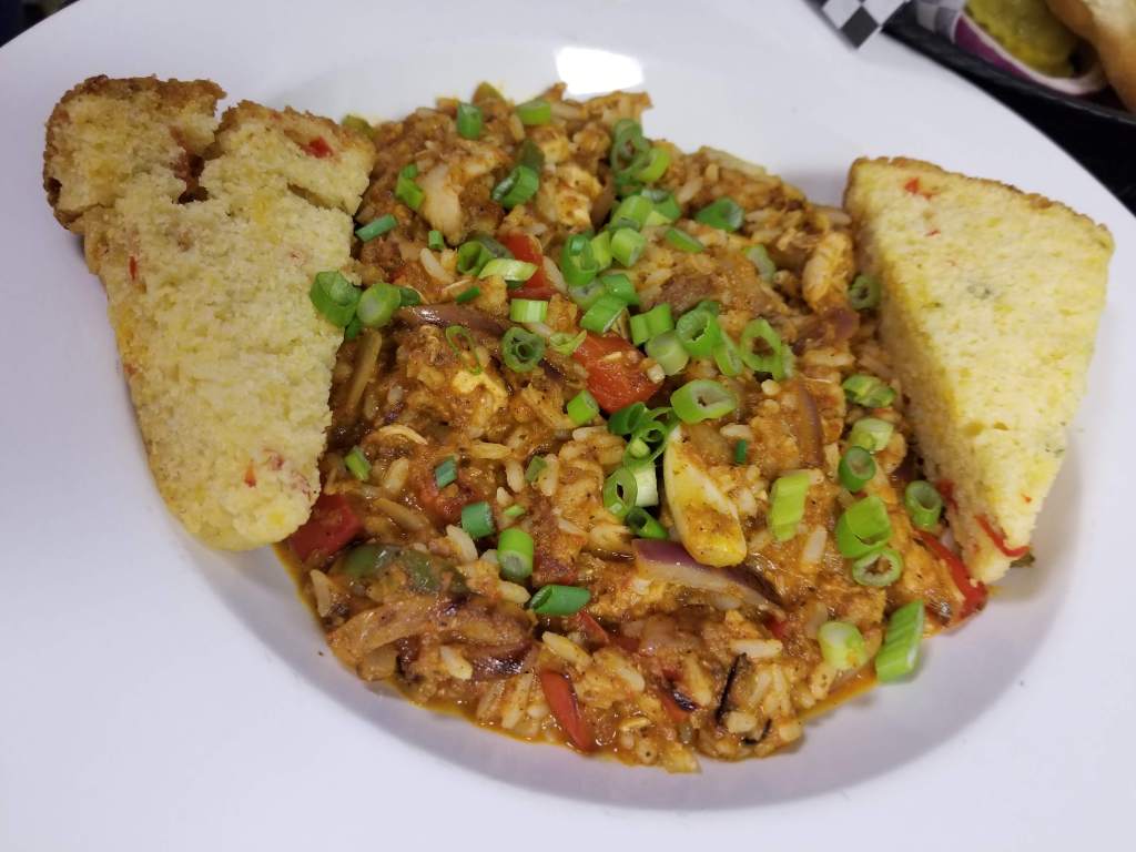 Blackened Catfish Dinner with Red Beans and Rice and Jalapeno Corn Bread