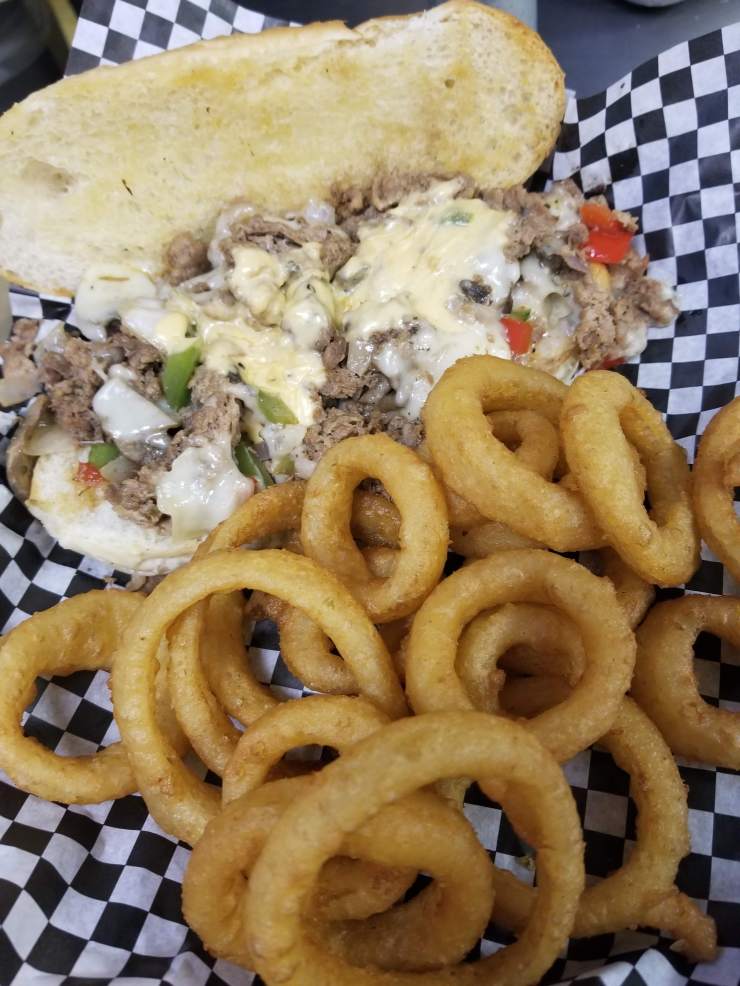 New Orleans Cheesesteak Po’Boy with Onion Rings